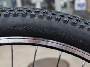 24×2.40、26×2.35という存在感のあるサイズで、見た目のインパクトはもちろん、段差やデコボコ道でも安定感があります。